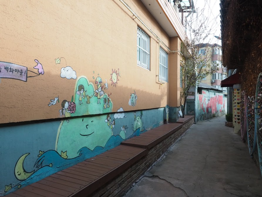 反正離開左檢票區,到附近行宮洞壁畫村행궁동벽화마을(華虹門附近)逛逛。